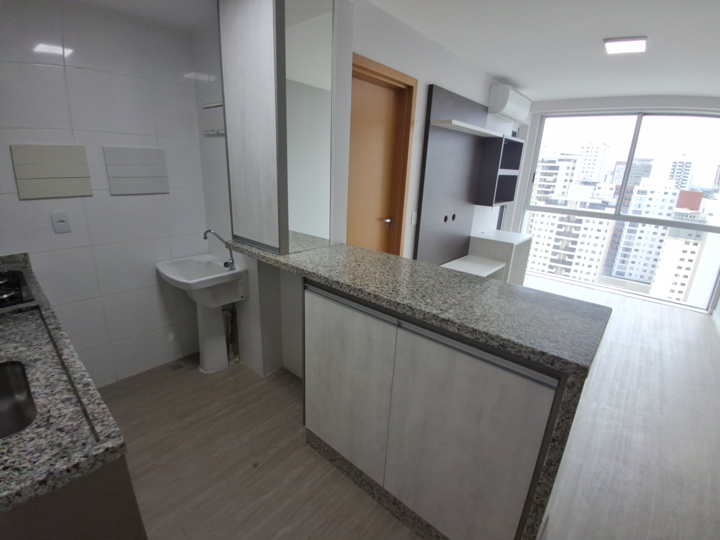 São 35m² totalmente planejados, com acabamentos de alto padrão, prontos para morar ou para investir. O grande diferencial é a varanda gourmet privativa, com fechamento em vidro, integrada diretamente à suíte – um espaço perfeito para relaxar ou para seu home office.
