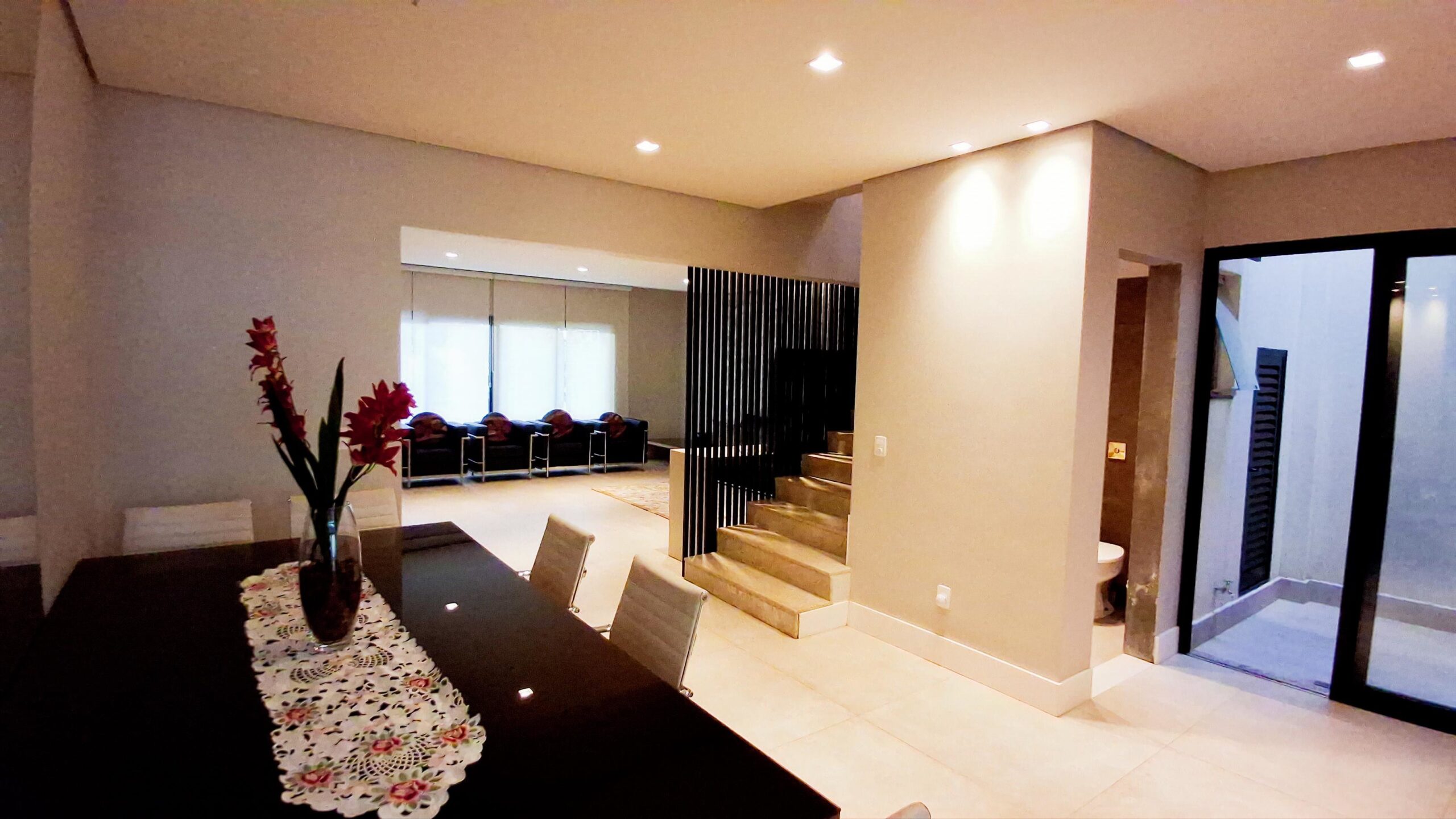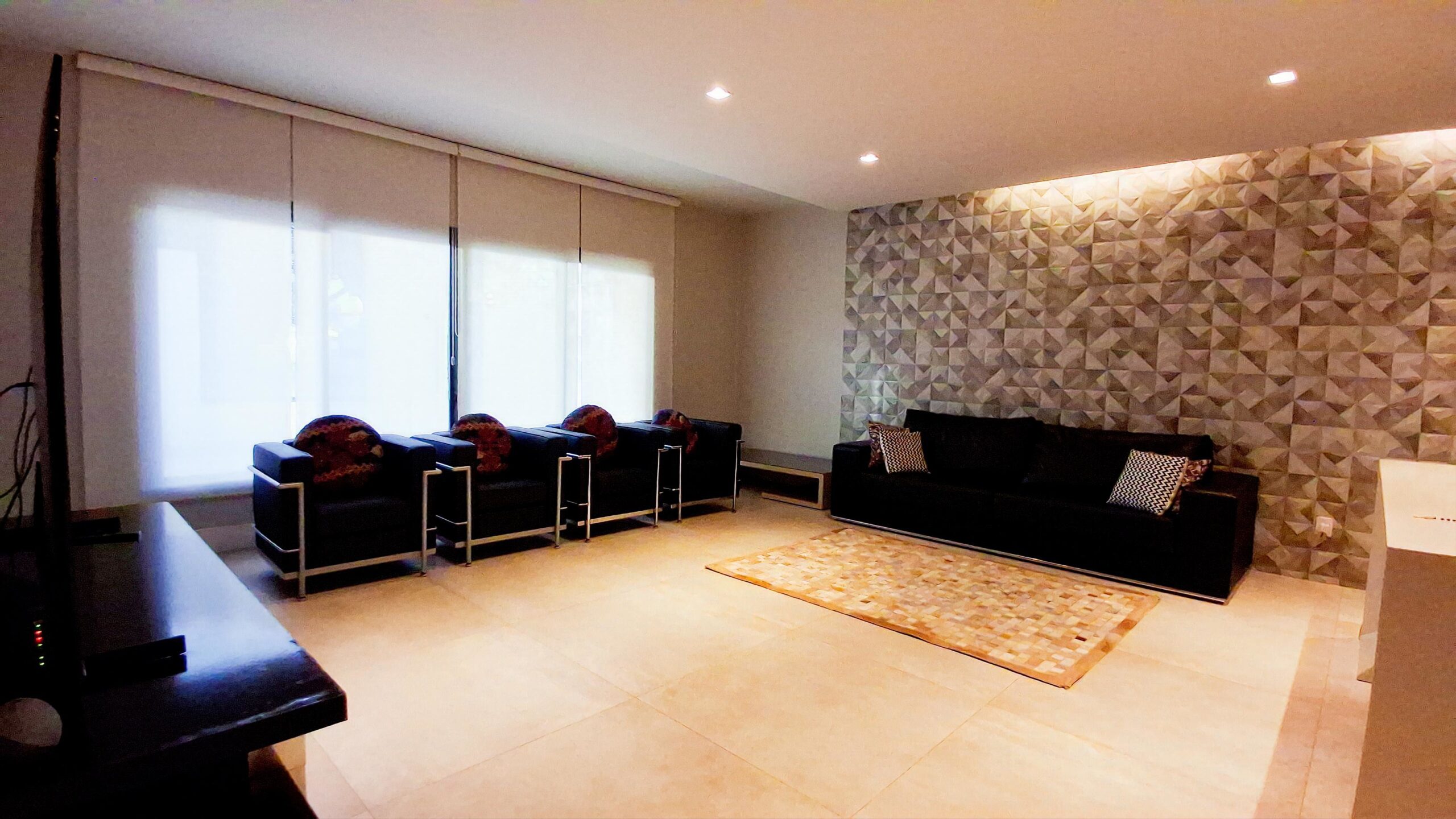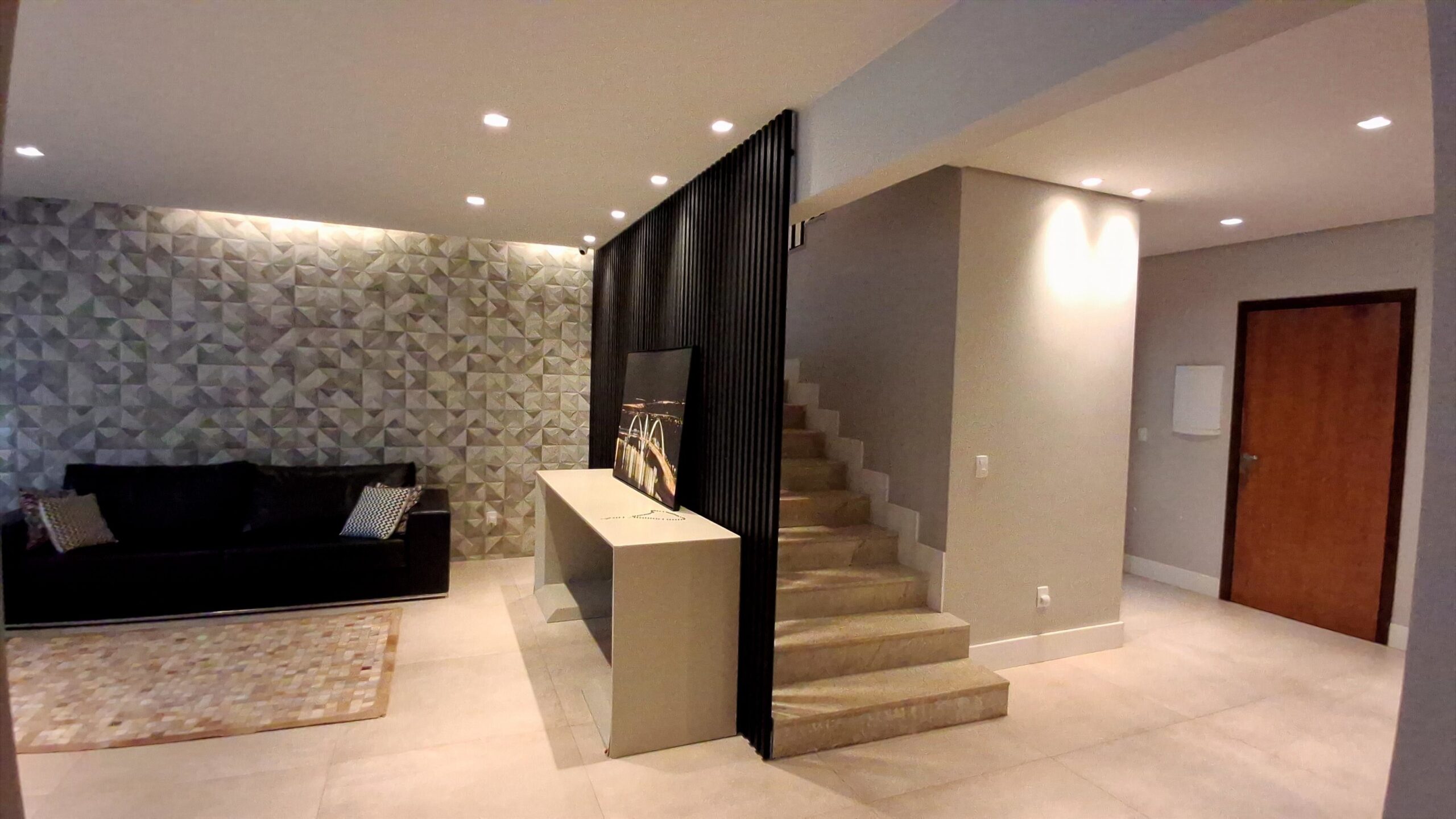 • Sala de estar e sala de jantar integradas com projeto luminotécnico sofisticado.