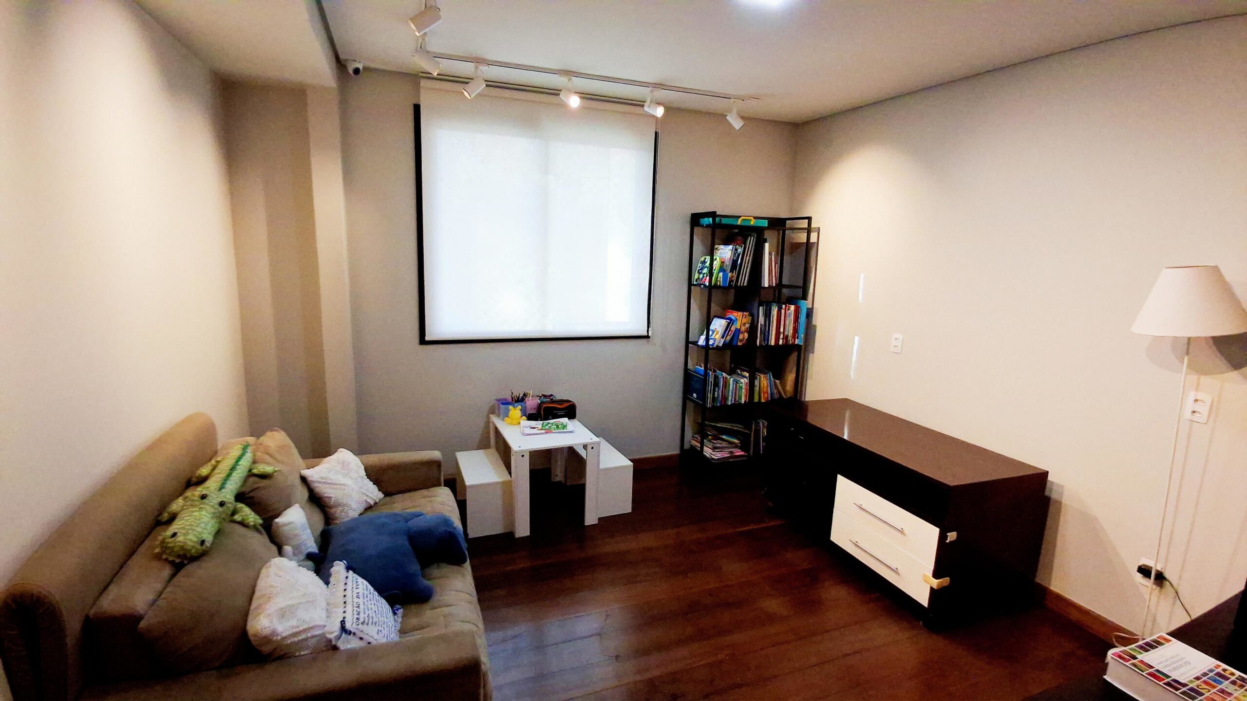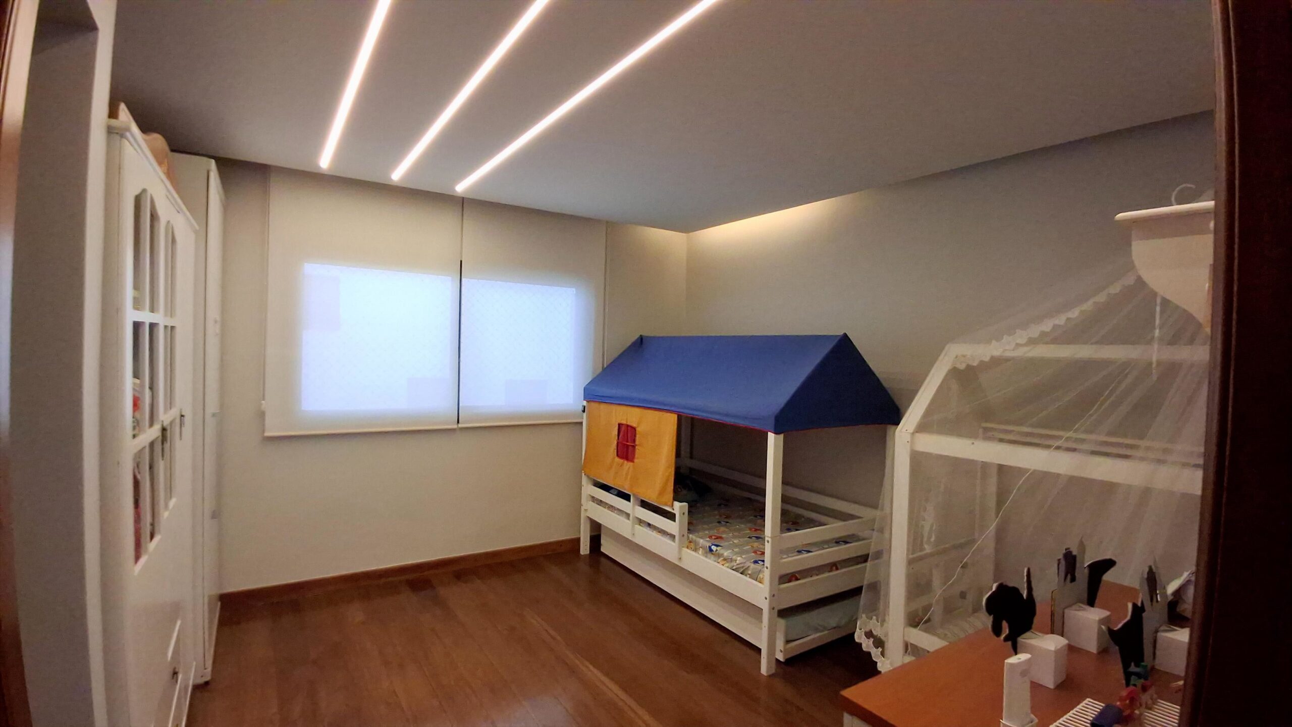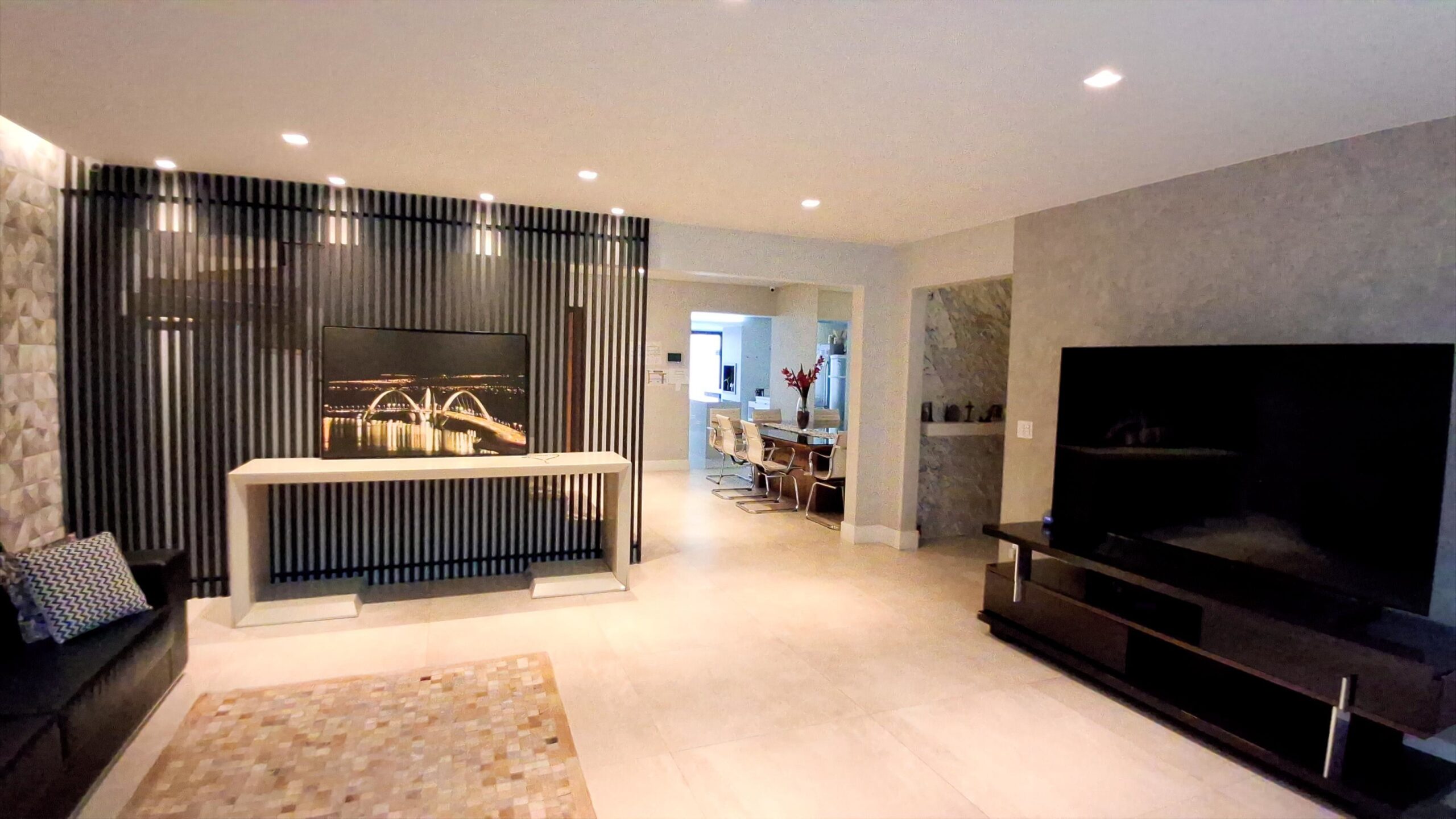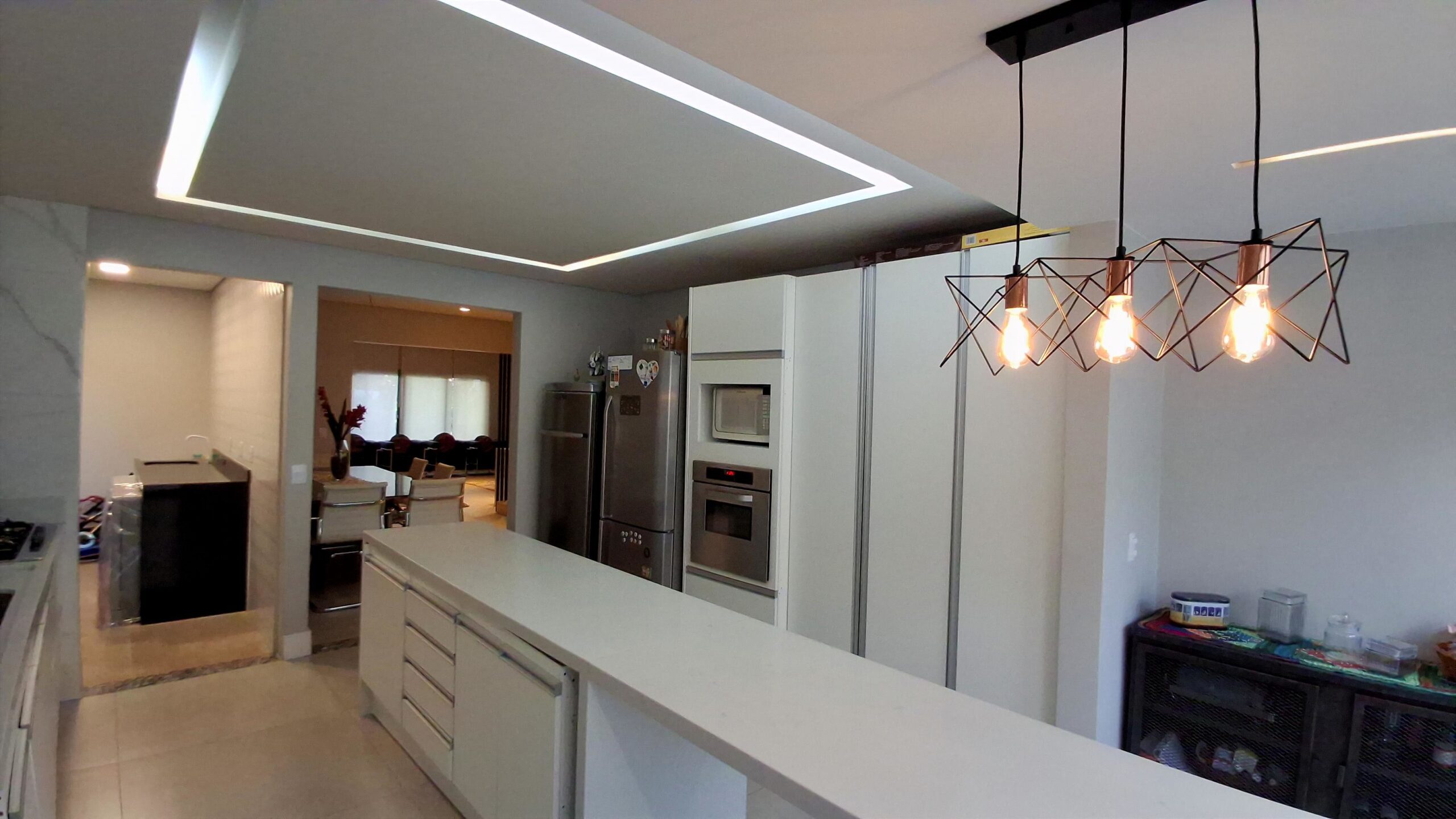 • Sala de estar e sala de jantar integradas com projeto luminotécnico sofisticado.