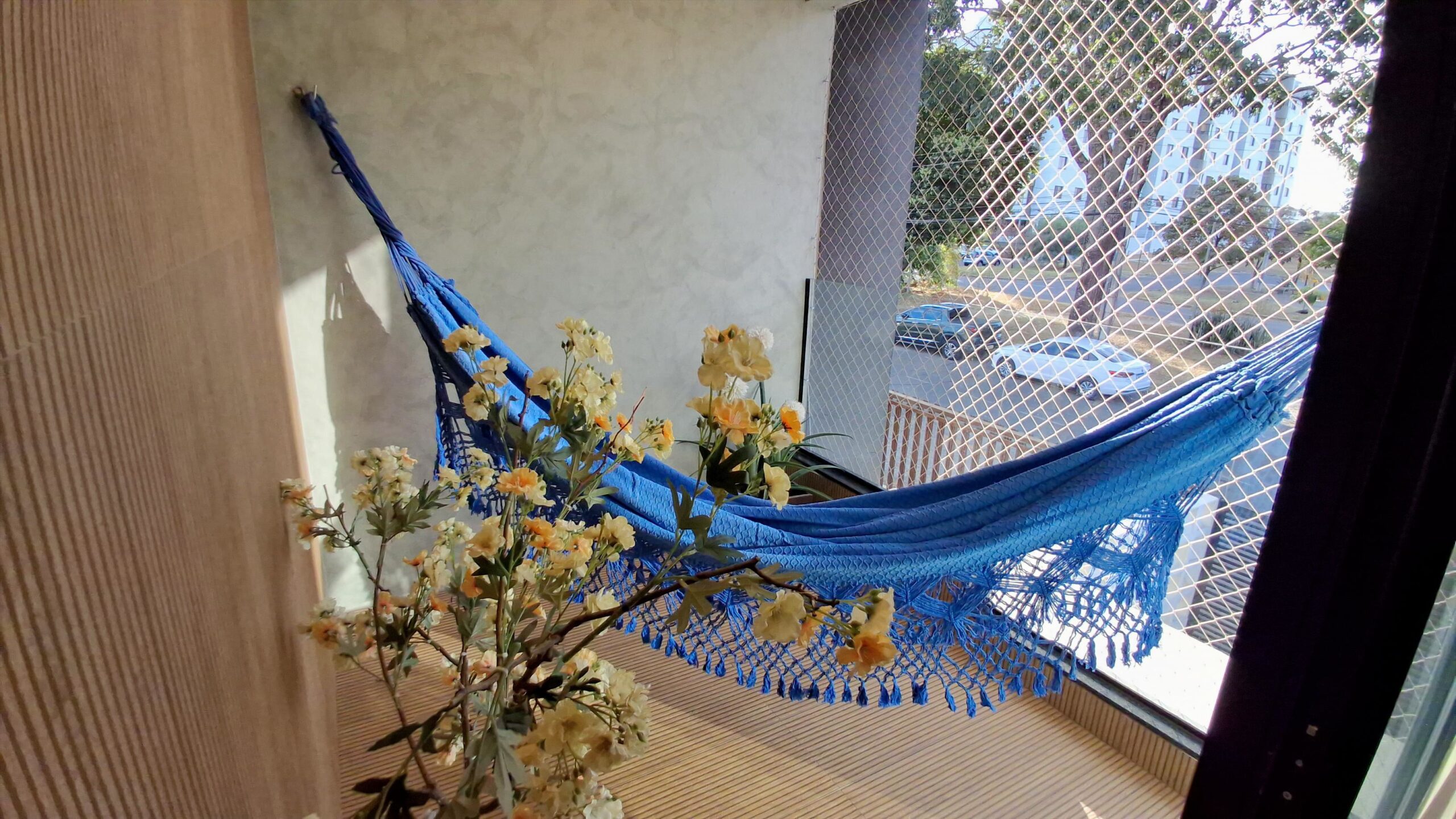 • 2 Suítes adicionais com piso em madeira, ar-condicionado e espaço para closet — uma delas com varanda charmosa e espaço para rede.